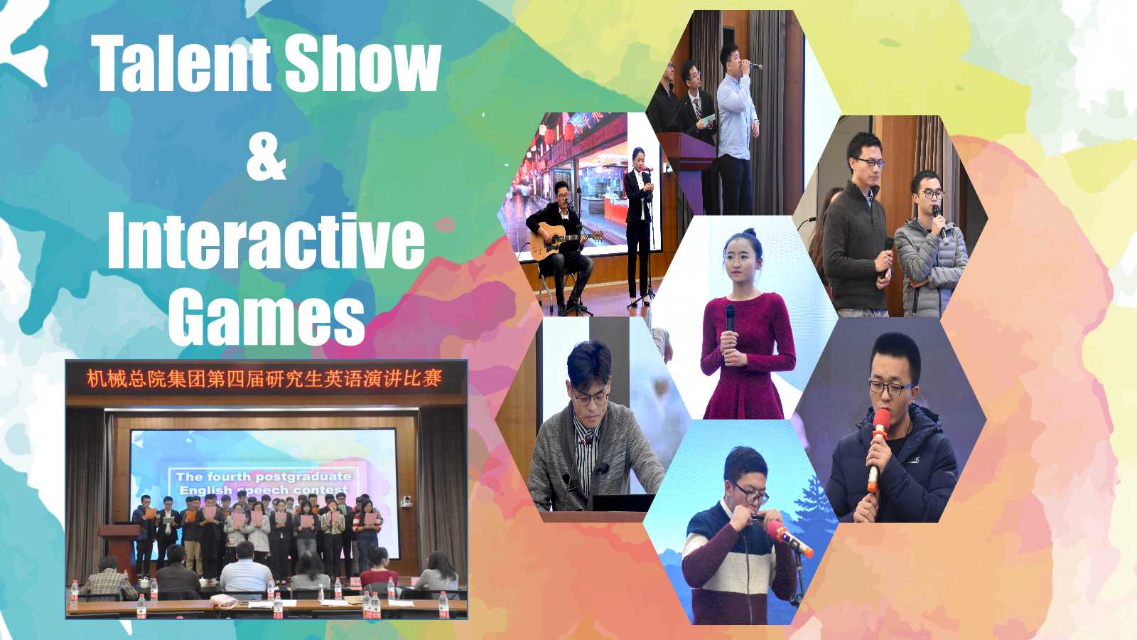 比賽間歇,來自材保所的張博聞表演了精彩的《帶你走進(jìn)西班牙足球》英文配音,來自輕量化院的閆丹丹和劉曉軍帶來了英文版吉他伴唱《成都》,來自機(jī)科股份的陳展帶來了動(dòng)聽的口琴曲《愛爾蘭畫眉》,來自輕量化院的郭子桐演唱了英文歌曲《Nothing`s Gonna Change My Love For You》,讓大家在緊張的比賽氛圍中感受到輕松與愉悅。此外,“電影配音”、“英語繞口令”、“Describe and guess”等一系列小游戲活躍了現(xiàn)場(chǎng)氣氛。